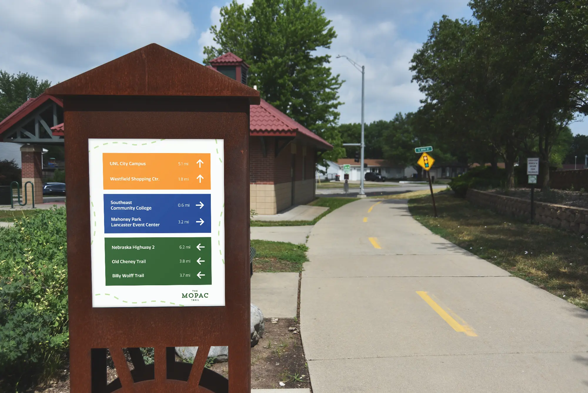 The MoPac Trail is a 50-mile community trail from Lincoln to Omaha that provides people with a scenic path through the beautiful landscapes of western Nebraska by maintaining the trail and letting the natural wildlife grow around it. The eastern and western portions of the trail are split and maintained by the cities and park agencies. The MoPac Trail wants to create its own identity, materials for the trail, and a twenty-page booklet that informs people about the trail and its history.
